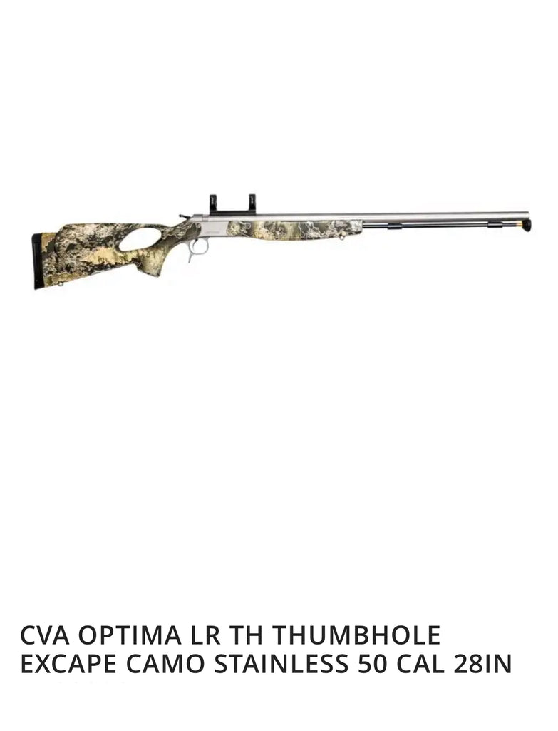 💥CVA OPTIMA LR TH THUMBHOLE EXCAPE CAMO STAINLESS 50 CAL 28IN